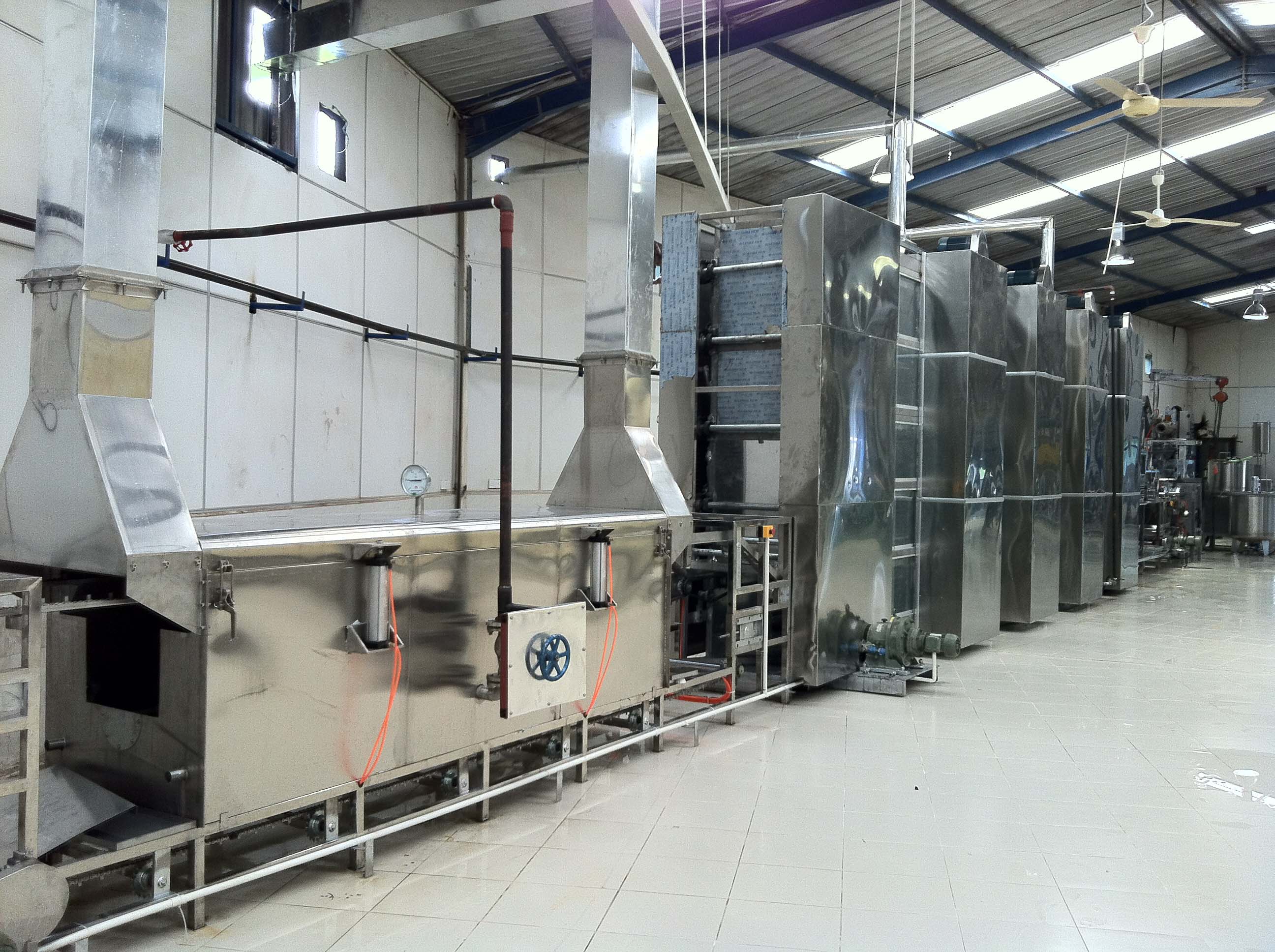 The rice vermicelli will be fully cooked on the continuous belt by steaming; and transfer into second aging tunnel, the rice vermicelli is loosened