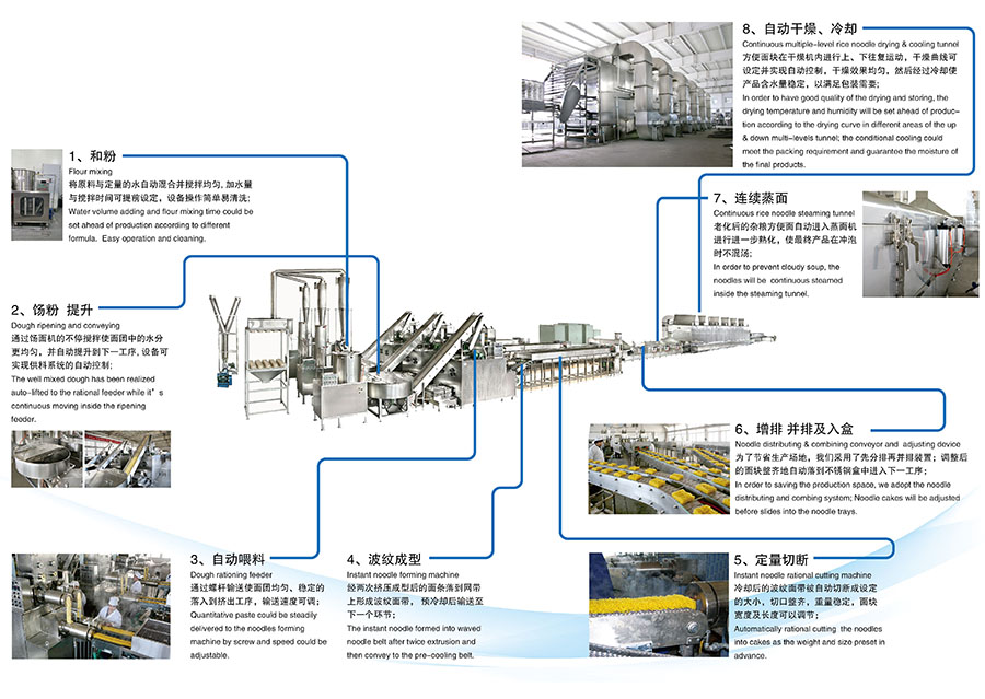本設(shè)備適用于多種雜糧谷物,如玉米粉、蕎麥粉、大米粉、小麥粉等,生產(chǎn)混合谷物的非油炸方便面,無須更換設(shè)備,只需調(diào)整參數(shù),即可生產(chǎn)玉米方便面、蕎麥方便面、燕麥方便面以及具有不同地域特性的不同雜糧方便面產(chǎn)品。產(chǎn)品可煮可泡,食用方便,口感滑爽Q彈,沒有雜糧的粗糙口感,為廣大消費者提供了即美味營養(yǎng)又方便的食品。滿足人們對食品營養(yǎng)、方便、美味的三大訴求。